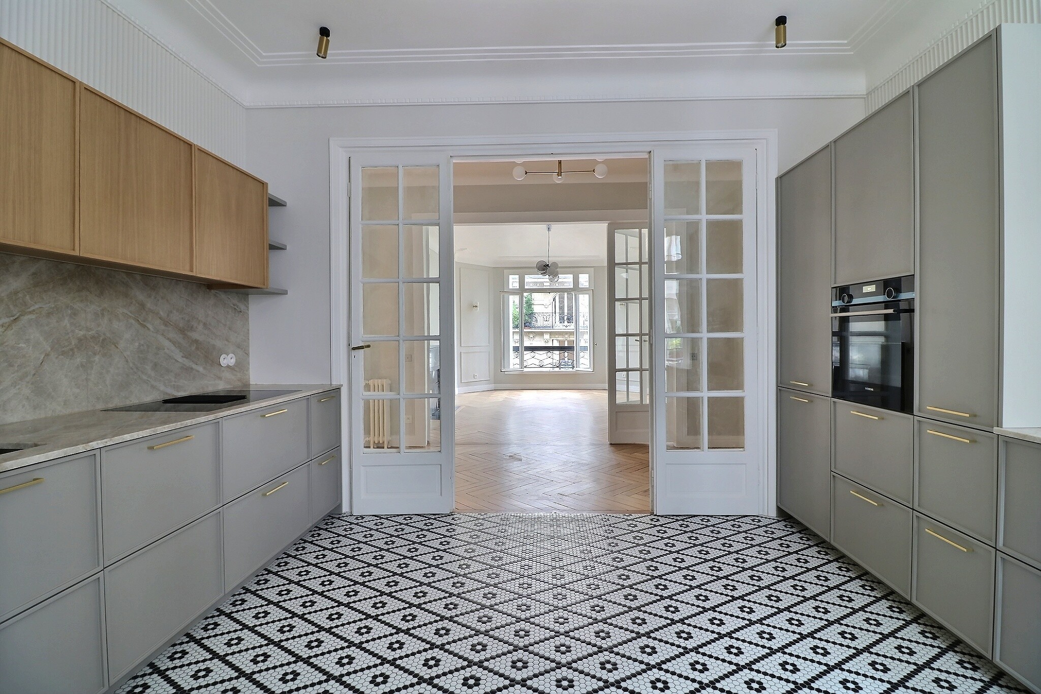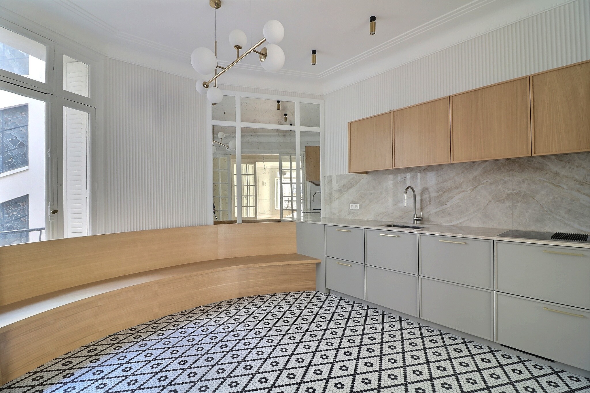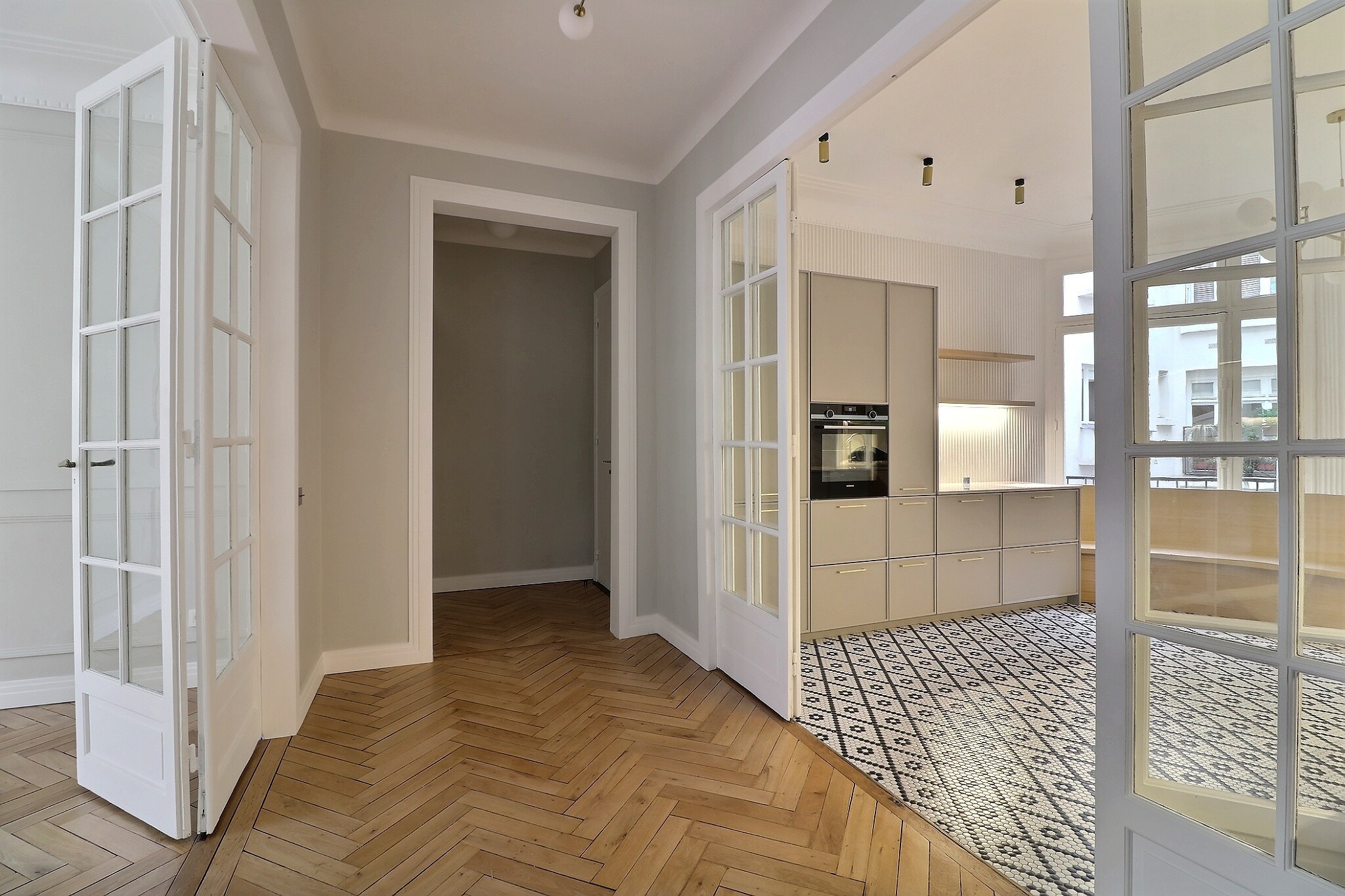 Au 4eme étage avec ascenseur, très bel Appartement refait à neuf par architecte, très clair et ensoleillé, comprenant une cuisine dinatoire aménagée et équipée, salon, salle à manger, 3 chambres et 3 salles d'eau, 2 toilettes, rangements, une studette accessible depuis l'appartement au 6ème (avec ascr) également à neuf, une cave, une cave à vin, un box. Surface appartement 147m2+Studette 8m2 en option.
