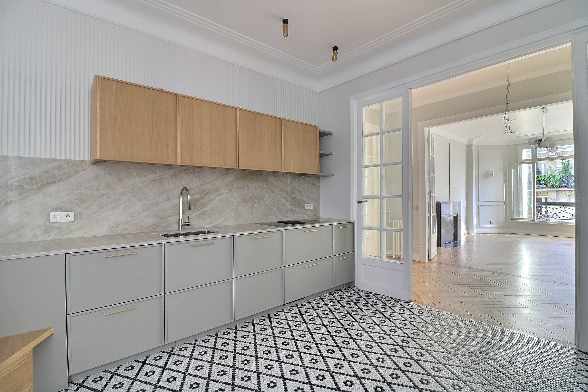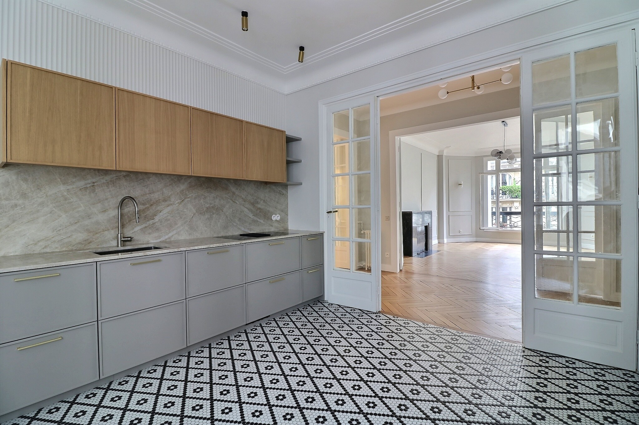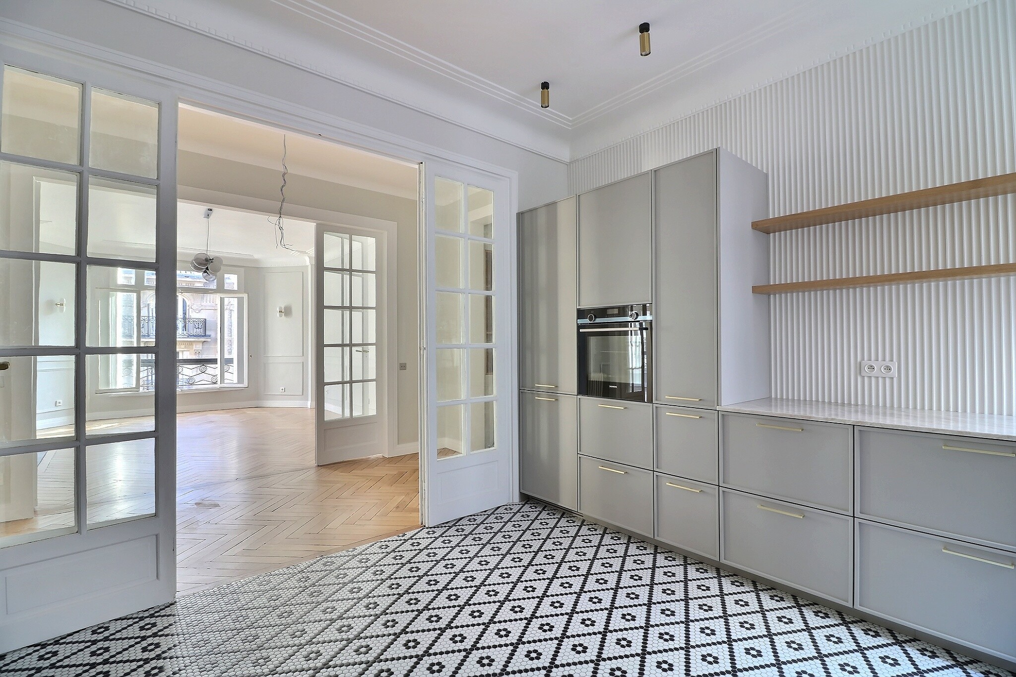 Au 4eme étage avec ascenseur, très bel Appartement refait à neuf par architecte, très clair et ensoleillé, comprenant une cuisine dinatoire aménagée et équipée, salon, salle à manger, 3 chambres et 3 salles d'eau, 2 toilettes, rangements, une studette accessible depuis l'appartement au 6ème (avec ascr) également à neuf, une cave, une cave à vin, un box. Surface appartement 147m2+Studette 8m2 en option.