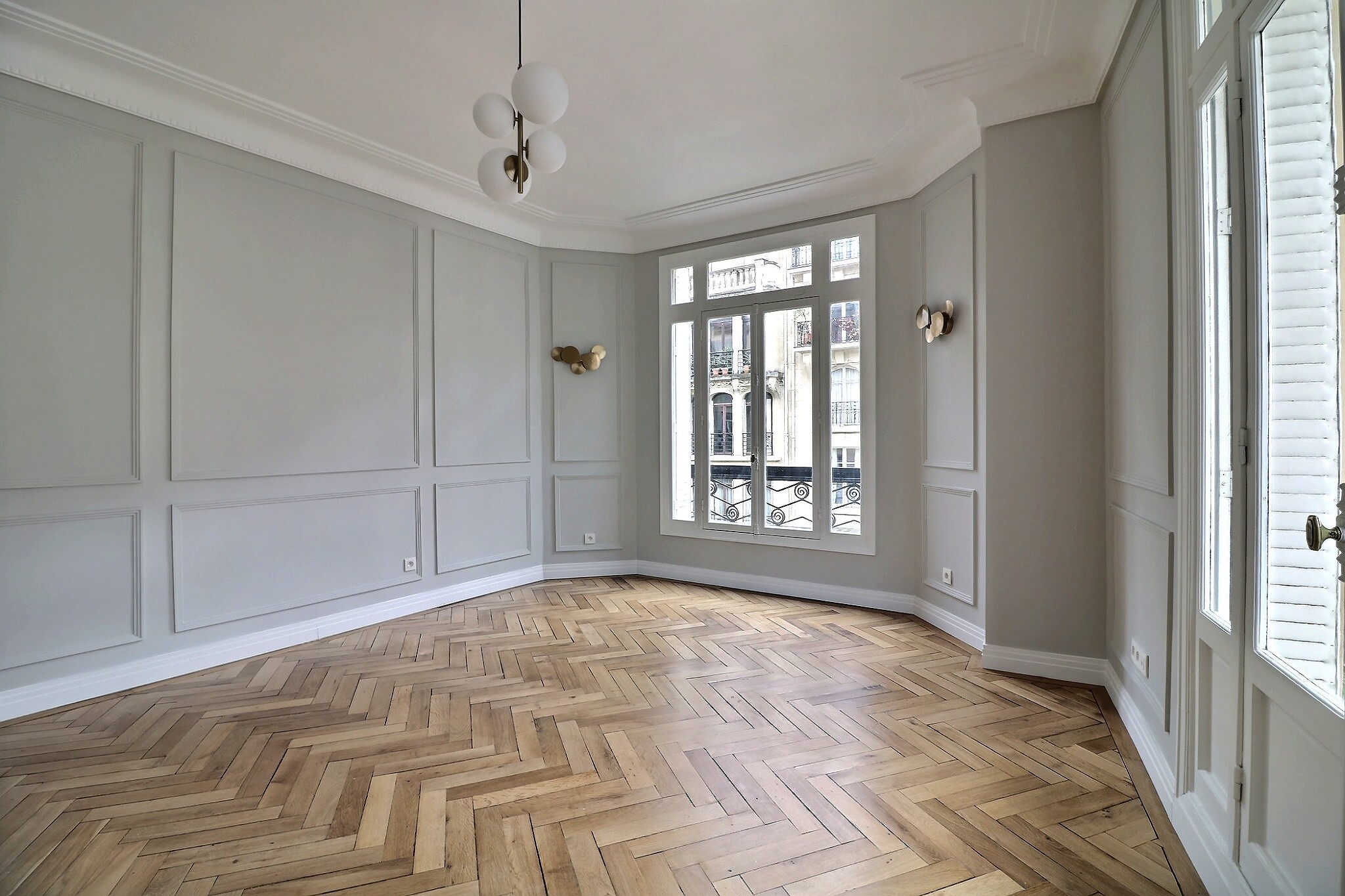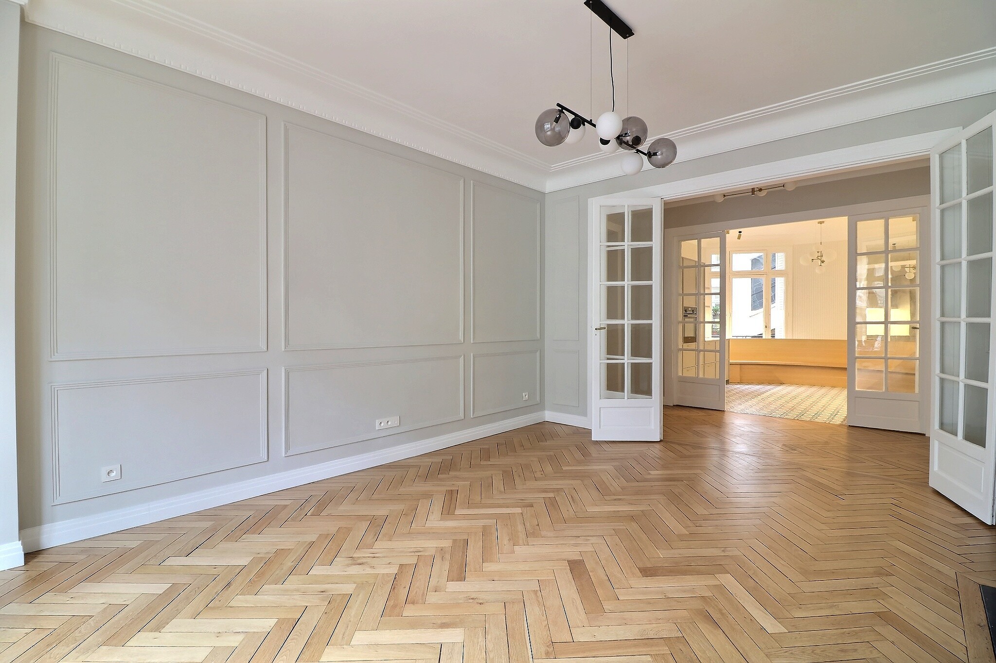 Appartement d'angle de charme faible vis à vis, très calme sur rue sans circulation, et dans immeuble de standing avec gardien. Chauffage collectif. Exceptionnel dans cet état.