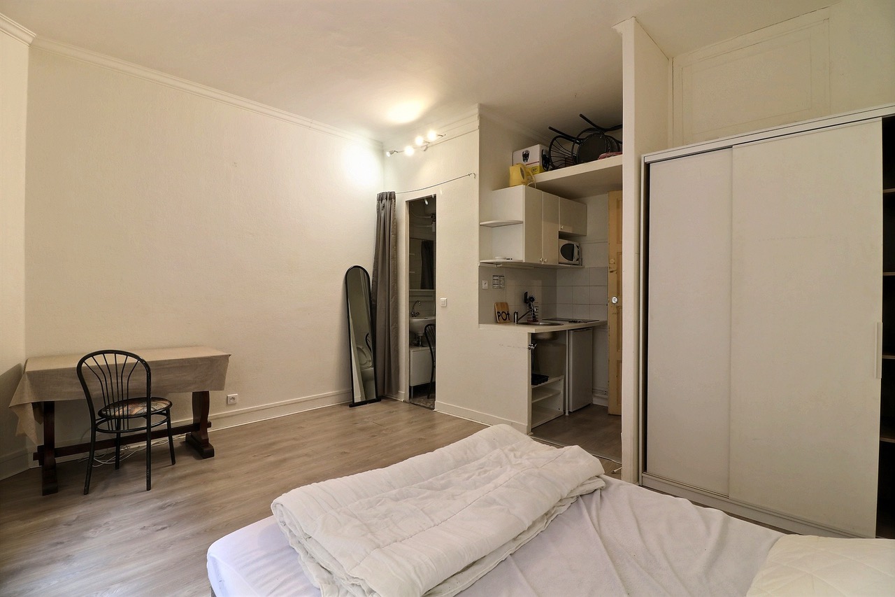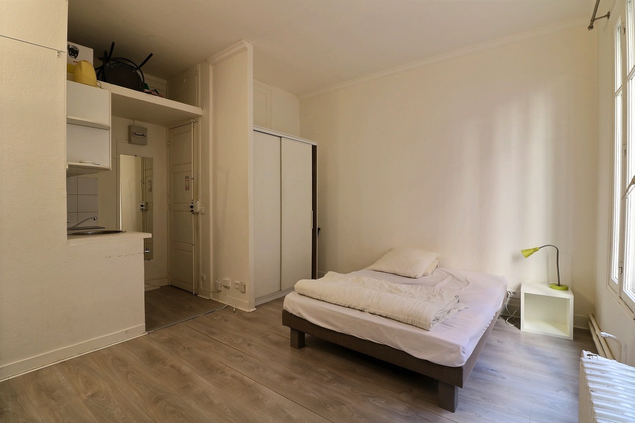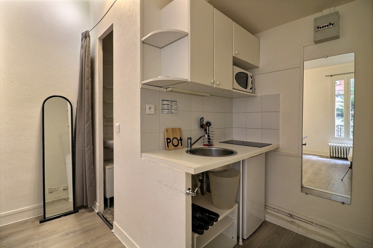 Au RDC sur jardin, un studio de 19 m² composé d'une entrée, une pièce principale avec grandes fenêtres, une cuisine ouverte aménagée, une salle d'eau avec un toilette. Cet appartement donnant au calme sur jardin profite d'un agencement sans perte de place et d'une hauteur sous plafond de 3m.